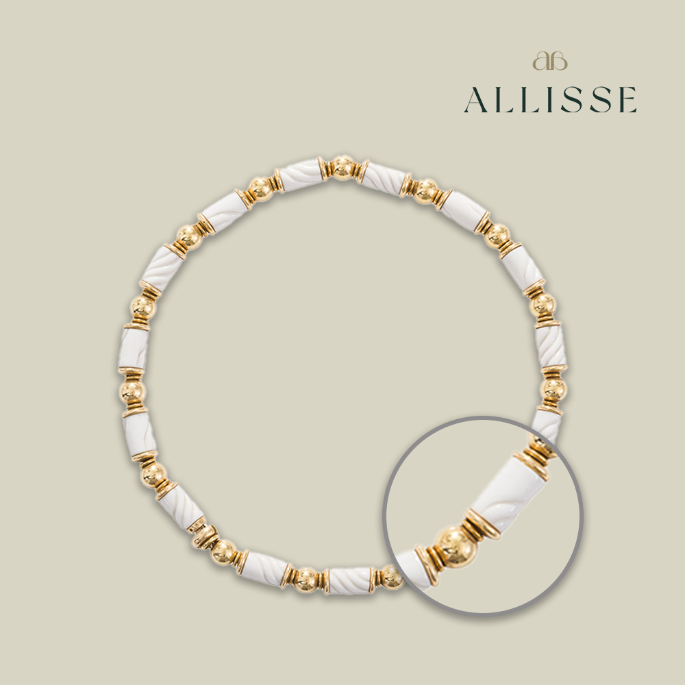 From the Chandra collection, comprising carved tubular white ceramic beads interspaced with 18ct gold fittings, total length 400mm, accompanied with original Bvlgari box